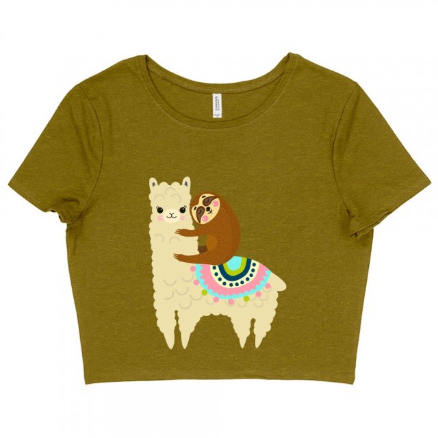 Sloth Riding Llama Women’s Cropped T-Shirt – Cute Crop Top – Graphic Crop Tee Shirt