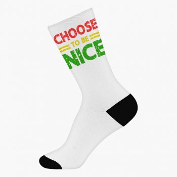 Choose To Be Nice Socks – Text Design Novelty Socks – Motivational Crew Socks