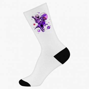 Dinosaur Astronaut Socks – Creative Novelty Socks – Space Dinosaur Crew Socks