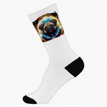Christmas Pug Socks – Unique Novelty Socks – Animal Art Crew Socks