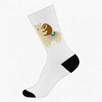 Sloth Riding Llama Socks – Cute Novelty Socks – Graphic Crew Socks