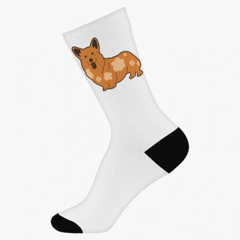 Corgi Silhouette Socks – Flower Print Novelty Socks – Graphic Crew Socks