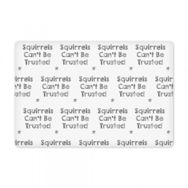 Squirrels Can’t Be Trusted Pet Food Mat – Funny Saying Anti-Slip Pet Bowl Mats – Printed Pet Feeding Mat