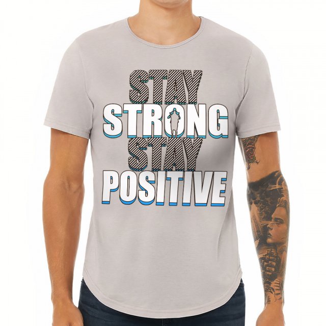 Stay Strong Stay Positive Curved Hem T-Shirt – Motivational T-Shirt – Cool Curved Hem Tee