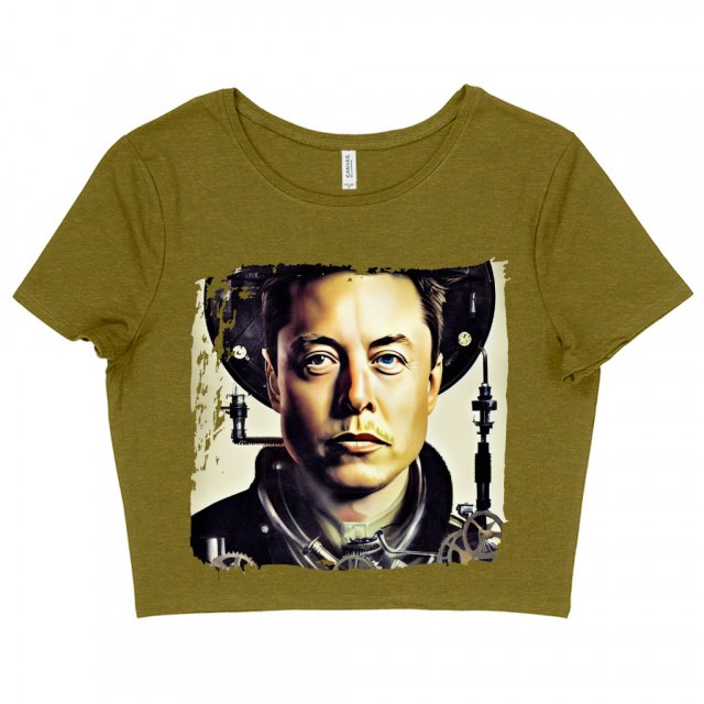 Steampunk Style Women’s Cropped T-Shirt – Elon Musk Face Crop Top – Retro Vintage Crop Tee Shirt