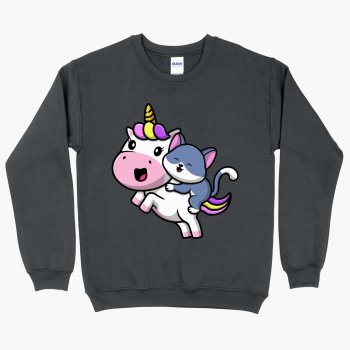 Cat Riding a Unicorn Sweatshirt – Cute Design Crewneck Sweatshirt – Cartoon Sweatshirt