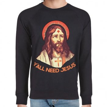Cool Christian Sweatshirt with Pocket – Printed Crewneck Sweatshirt – Illustration Sweatshirt