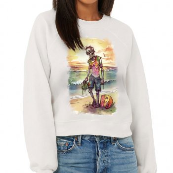 Zombie Design Cropped Sweatshirt – Fashion Design Women’s Sweatshirt – Printed Crop Crew Sweatshirt