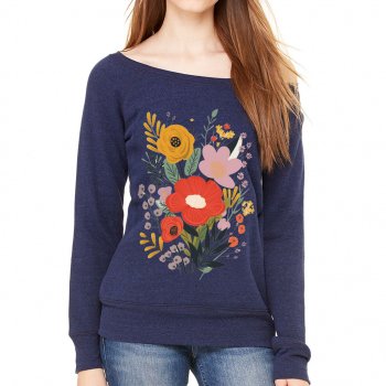 Floral Design Wide Neck Sweatshirt – Cute Women’s Sweatshirt – Botanical Design Sweatshirt