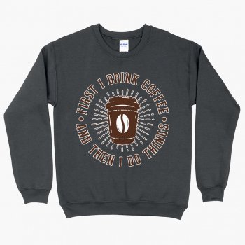 First I Drink Coffee Then I Do Things Sweatshirt – Sarcastic Crewneck Sweatshirt – Cool Graphic Sweatshirt