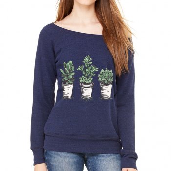 Plant Print Wide Neck Sweatshirt – Botanical Women’s Sweatshirt – Illustration Sweatshirt