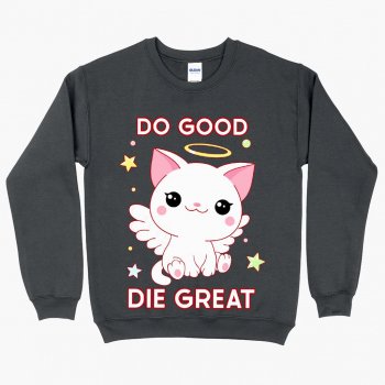 Do Good Die Great Sweatshirt – Cute Cat Crewneck Sweatshirt – Text Design Sweatshirt