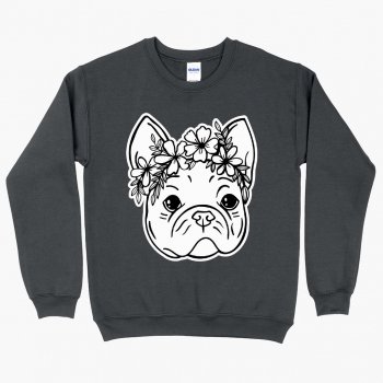 Dog Face Sweatshirt – Flower Print Crewneck Sweatshirt – Graphic Sweatshirt