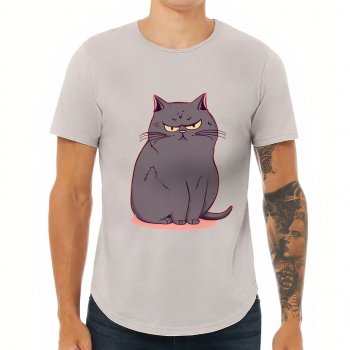 Cat Graphic Curved Hem T-Shirt – Unique T-Shirt – Print Curved Hem Tee