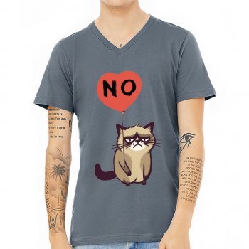 Cat No V-Neck T-Shirt – Heart T-Shirt – Art Print V-Neck Tee