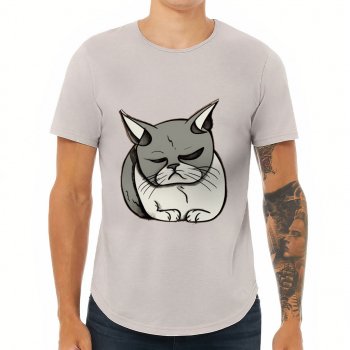 Sad Cat Curved Hem T-Shirt – Illustration T-Shirt – Art Curved Hem Tee