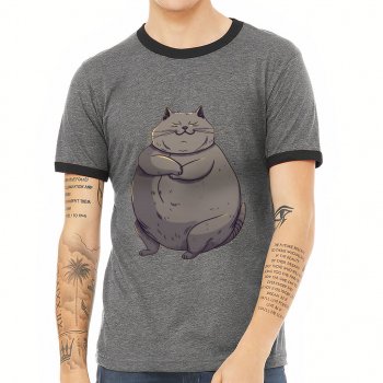 Fat Cat Ringer T-Shirt – Funny T-Shirt – Animal Art Ringer Tee
