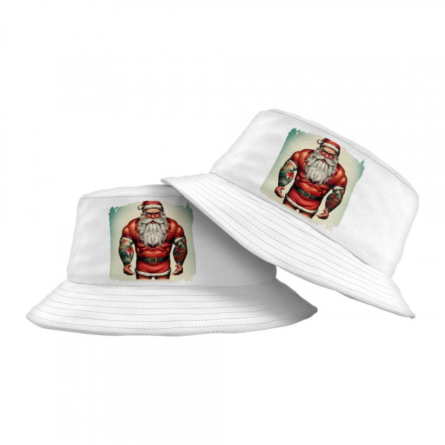 Tattoo Santa Bucket Hat – Cool Santa Hat – Graphic Bucket Hat