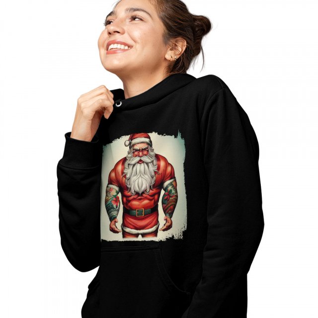 Tattoo Santa Hooded Sweatshirt – Cool Santa Hoodie – Graphic Hoodie