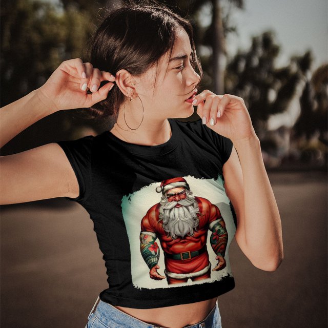 Tattoo Santa Women’s Cropped T-Shirt – Cool Santa Crop Top – Graphic Crop Tee Shirt