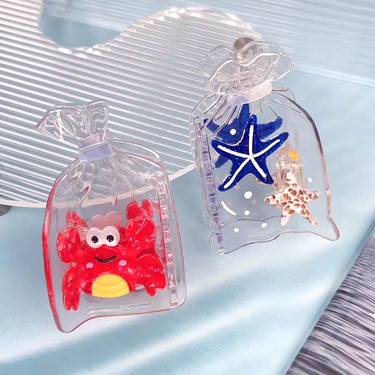 Introducing our New Acetic Acid Clip featuring a niche design that combines creativity and style! This charming transparent shark clip is adorned with delightful drift bottle, starfish, and crab motifs, perfect for any water-loving fashionista. Whether you’re hitting the beach, dressing up for a summer party, or simply adding flair to your everyday look, this eye-catching clip is sure to turn heads!