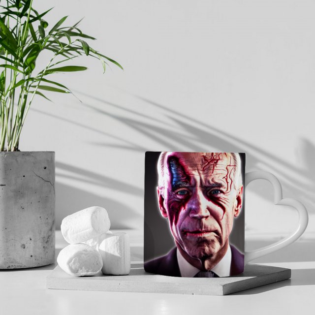 Trendy Mug with Heart Handle – Creepy Design Mug – Creative Ceramic Mug