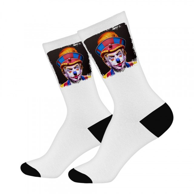 Trump As a Clown Socks – Printed Novelty Socks – Graphic Art Crew Socks
