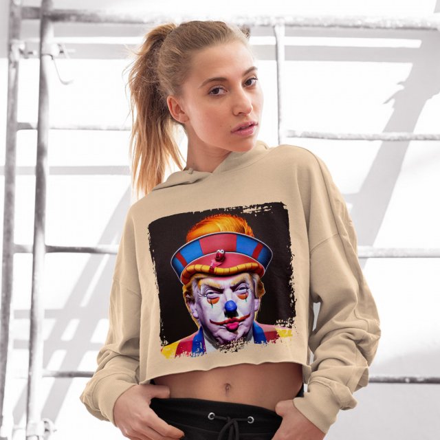 Trump As a Clown Women’s Cropped Fleece Hoodie – Printed Cropped Hoodie for Women – Graphic Art Hooded Sweatshirt