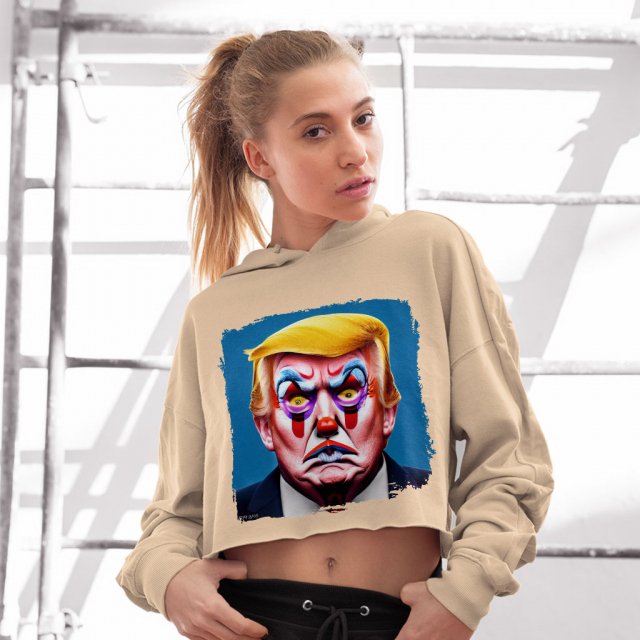 Trump Clown Art Women’s Cropped Fleece Hoodie – Clown Cropped Hoodie for Women – Printed Hooded Sweatshirt