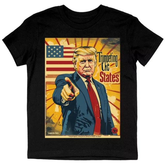 Trumpeting the States Kids’ T-Shirt – Trump Retro Graphic Tee
