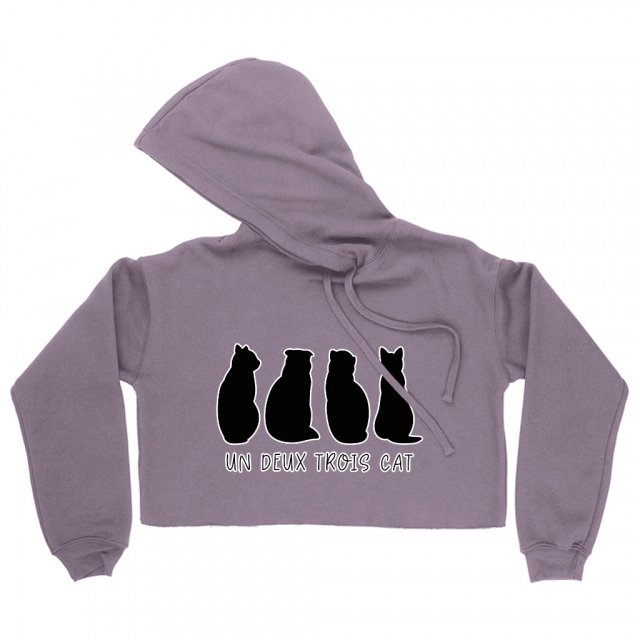 Un Deux Trois Cat Women’s Cropped Fleece Hoodie – Cat Cropped Hoodie for Women – Funny Hooded Sweatshirt