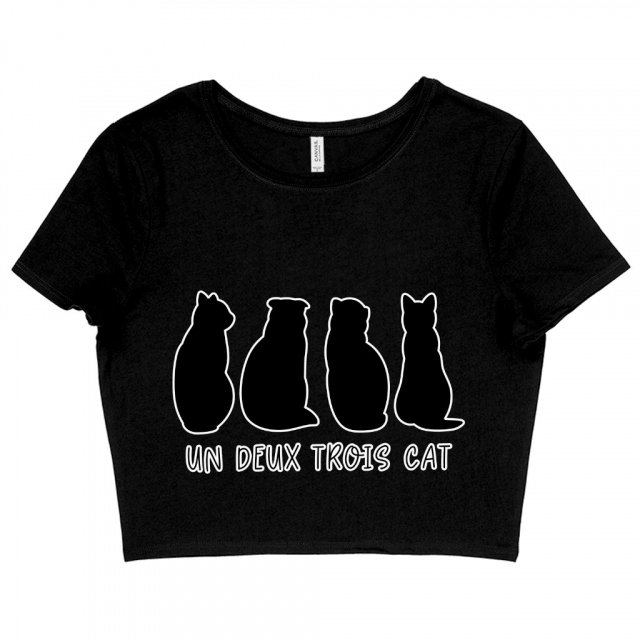 Un Deux Trois Cat Women’s Cropped T-Shirt – Cat Crop Top – Funny Crop Tee Shirt
