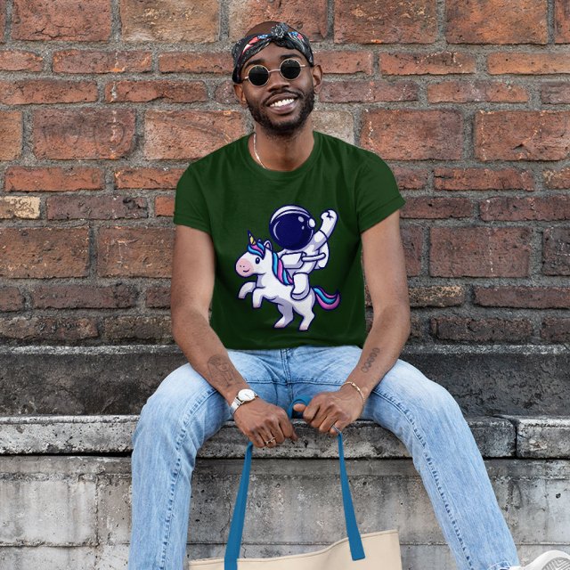 Unicorn Astronaut Heavy Cotton T-Shirt – Cool Tee Shirt – Printed T-Shirt