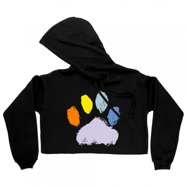 Vintage Paw Print Women’s Cropped Fleece Hoodie – Dog Paw Print Cropped Hoodie for Women – Graphic Hooded Sweatshirt