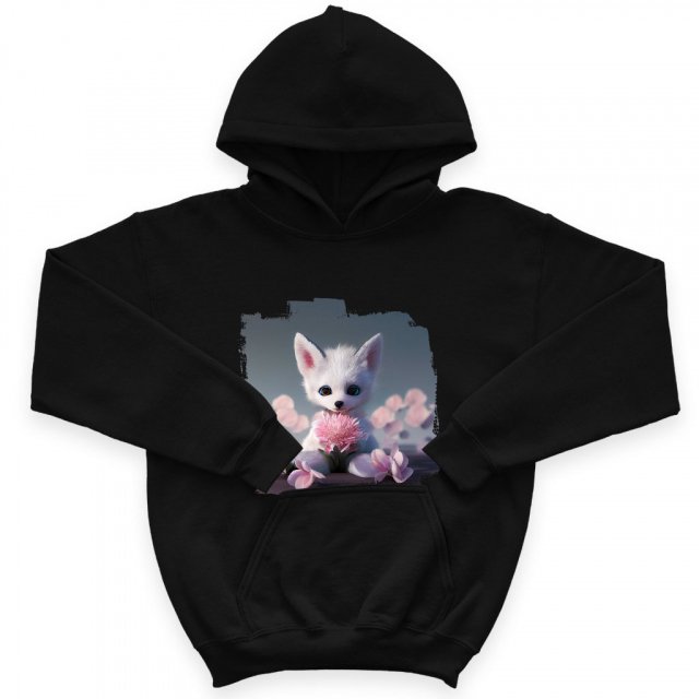 White Fox Kids’ Sponge Fleece Hoodie – Flower Kids’ Hoodie – Cute Hoodie for Kids
