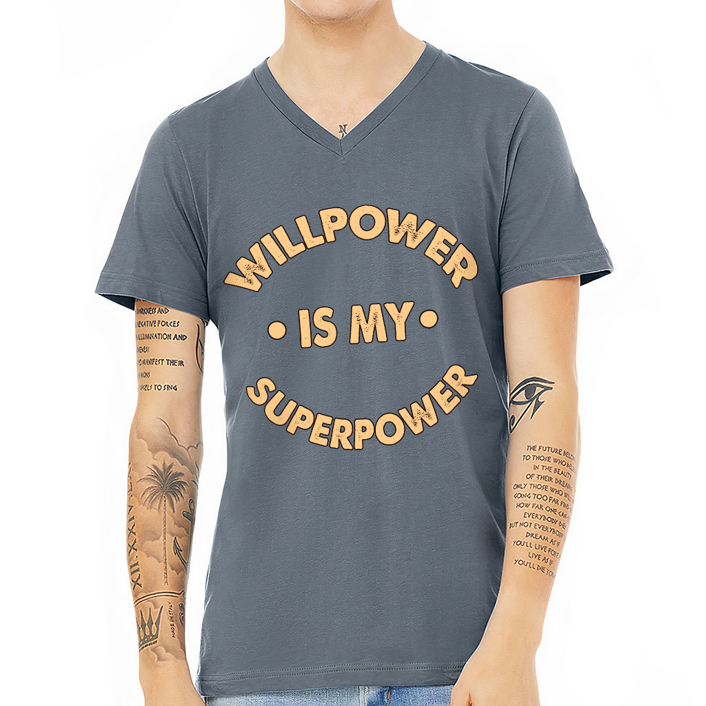 Willpower Is My Superpower V-Neck T-Shirt – Art T-Shirt – Unique V-Neck Tee