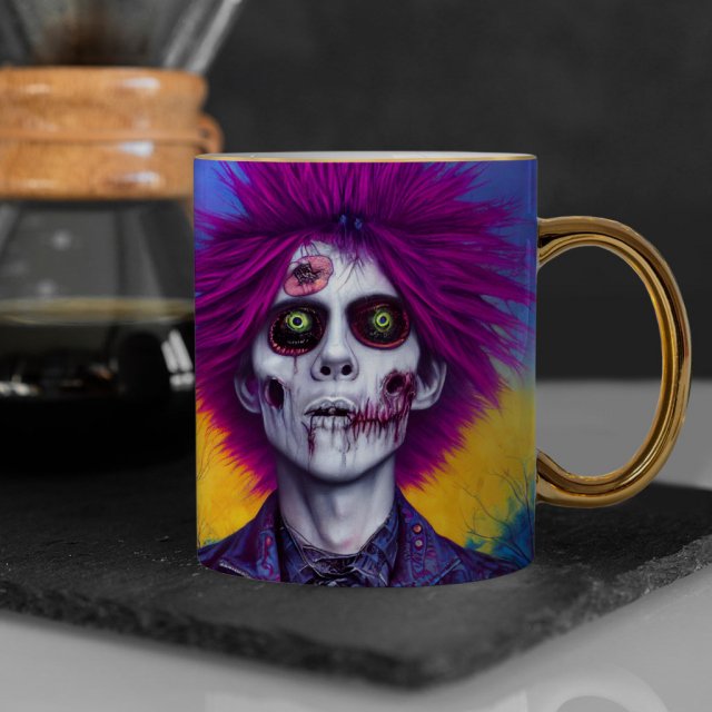 Zombie Face Mug – Creepy Gold Rim and Handle Mug – Trippy Mug