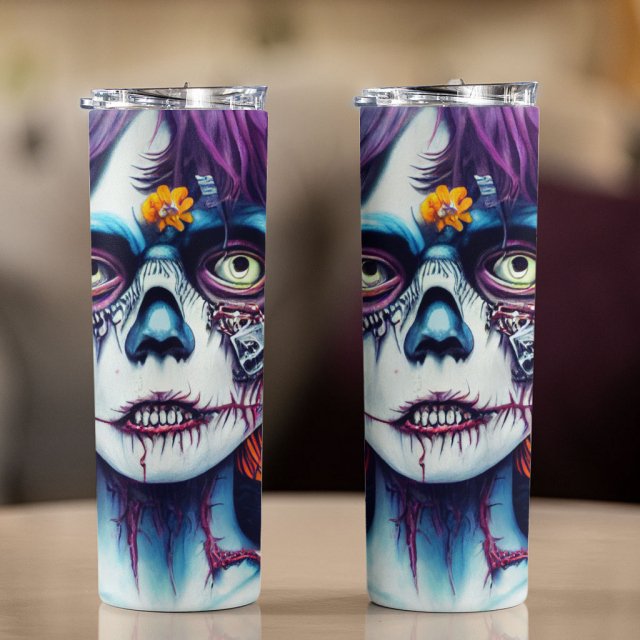 Zombie Head 20oz Skinny Tumbler – Halloween Travel Mug – Psychedelic 20oz Skinny Tumbler