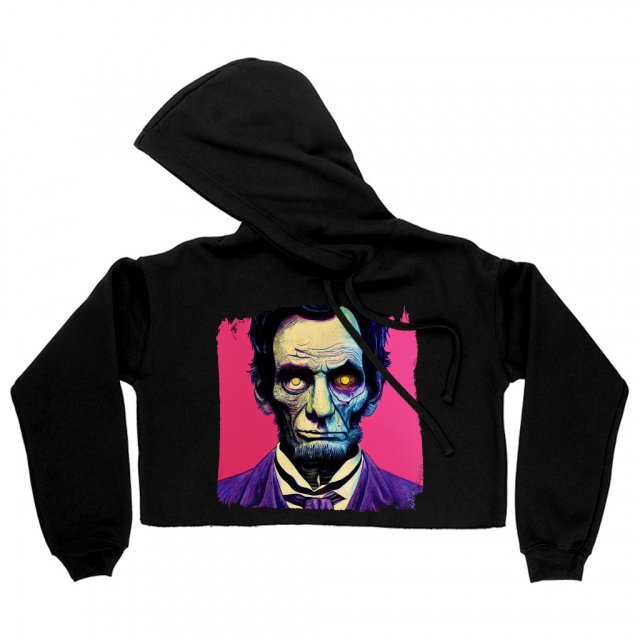 Zombie Women’s Cropped Fleece Hoodie – Pop Art Cropped Hoodie for Women – Abraham Lincoln Hooded Sweatshirt