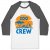 features raglan 3/4 sleeves and a modern fit that is perfect for a day